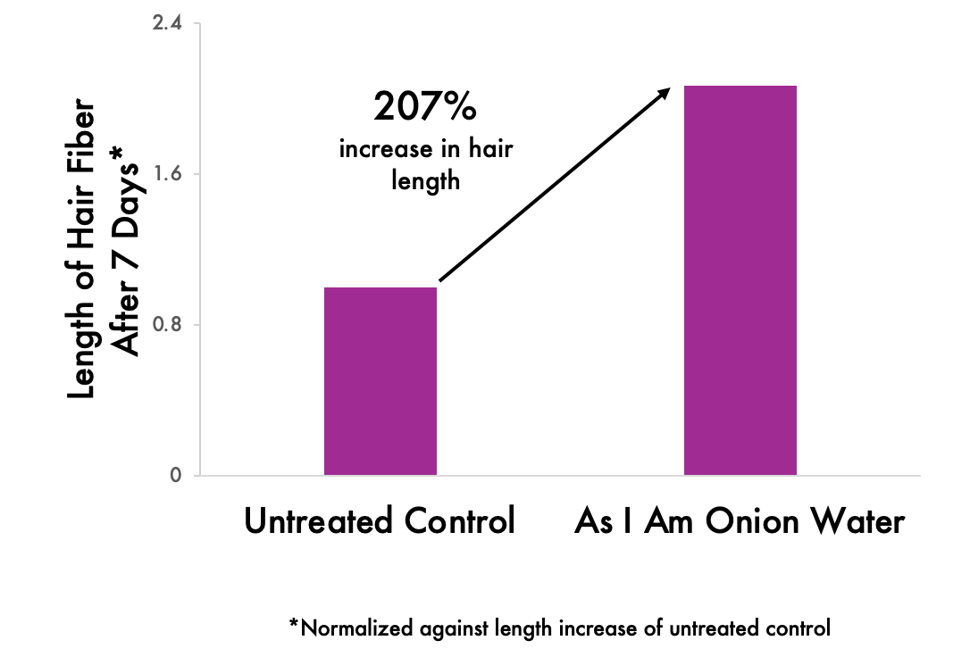Die Inhaltsstoffe der As I Am-Produkte sind wissenschaftlich fundiert und zeigen echte Ergebnisse. In Laborstudien, Rote-Zwiebel-Saft und Isoquercetin das Haarwachstum um bis zu 135 % bzw. 118 % an und sorgen so für sichtbar stärkere und gesündere Haarsträhnen.